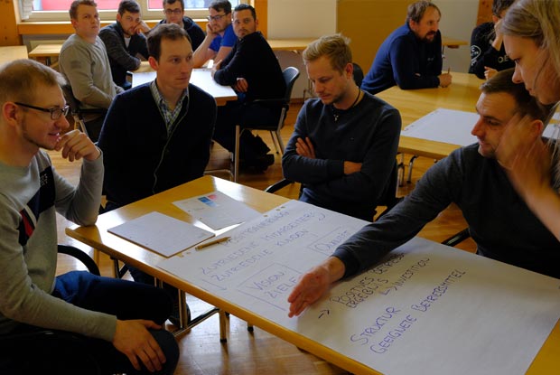 In Arbeitsgruppen erarbeiteten die Holzbaujunioren viele Vorschläge für die Kundenorientierung im Handwerk.