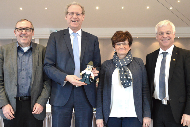 In Sachen Ausbildung kündigte Martin Paul Gorchs die Theatertour 2019 an. Ab 18. Februar ist Zimmermeister Richard Betz wieder mit seinem Stück "Mit Herz und Hand" in bayerischen Schulen unterwegs und wirbt damit für den Zimmererberuf.