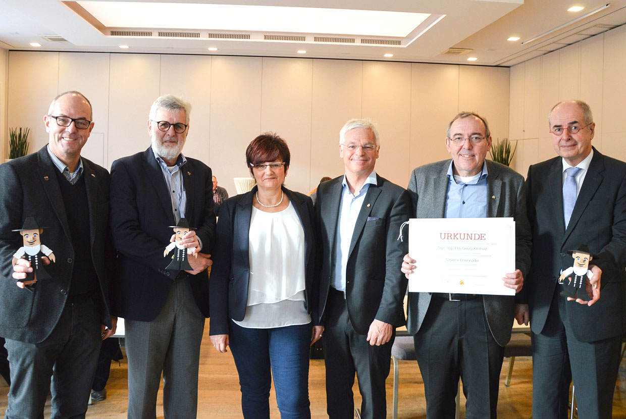 Anschließend verlieh LIV-Präsident Peter Aicher dem Bezirksvorsitzenden Georg Keilholz die Silberne Ehrennadel des Bayerischen Zimmererhandwerks. Er lobte Keilholz als „engagierten Unternehmer und verantwortungsbewussten Ehrenamtsträger“.