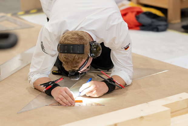 Linus Großhardt ist Mitglied der Zimmerer-Nationalmannschaft von Holzbau Deutschland – Bund Deutscher Zimmermeister im Zentralverband des Deutschen Baugewerbes. Unterstützt wird die Mannschaft seit 2008 von den Holzbau Deutschland Leistungspartnern. Die Ergebnisse zeigen, dass sich das Engagement lohnt: Seit vielen Jahren spielt die Zimmerer-Nationalmannschaft bei nationalen und internationalen Wettbewerben ganz vorne mit. Fünfmal Europameister in der Nationenwertung, viermal in der Einzelwertung, Goldmedaille und damit Weltmeistertitel 2015 für Simon Rehm und 2019 für Alexander Bruns, Silber und Vizeweltmeistertitel für Philipp Kaiser bei den World Skills 2022 Special Edition und den Europameistertitel bei den EuroSkills 2024 für Jonas Lauhoff – die Bilanz kann sich sehen lassen!